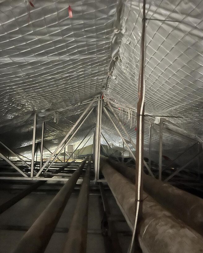 Depuis septembre 2023, IEC propose la pose de filets anti-chute étanches, une solution innovante et sécurisée principalement destinée aux chantiers de désamiantage.